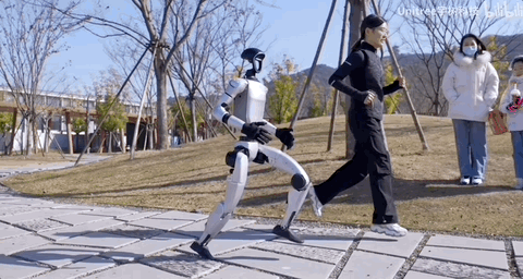 G1 在行走和奔跑时,运动姿态很稳定,特别是跑步时的动态平衡保持得很好,各个部位的协同也非常到位,要是穿一身紧身运动衣,再带个帽子,混进跑步队伍,一时间还真分不清它是真人还是机器人。
