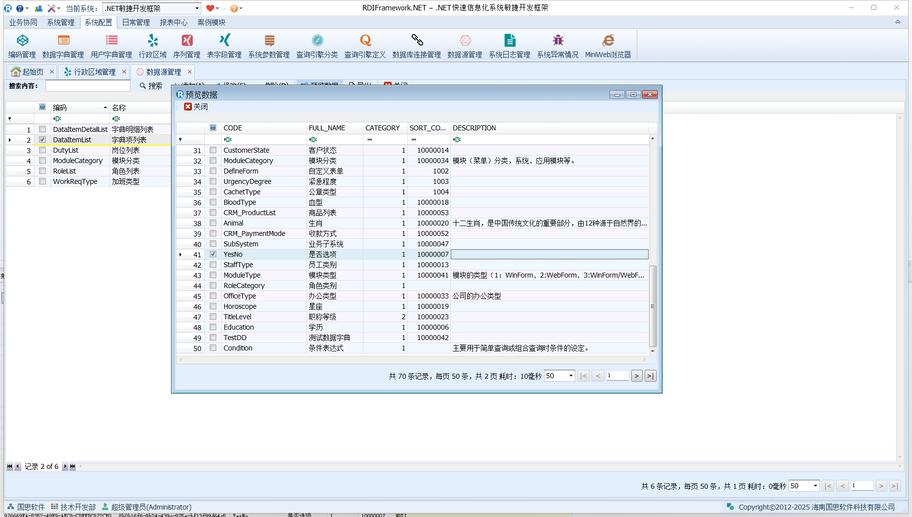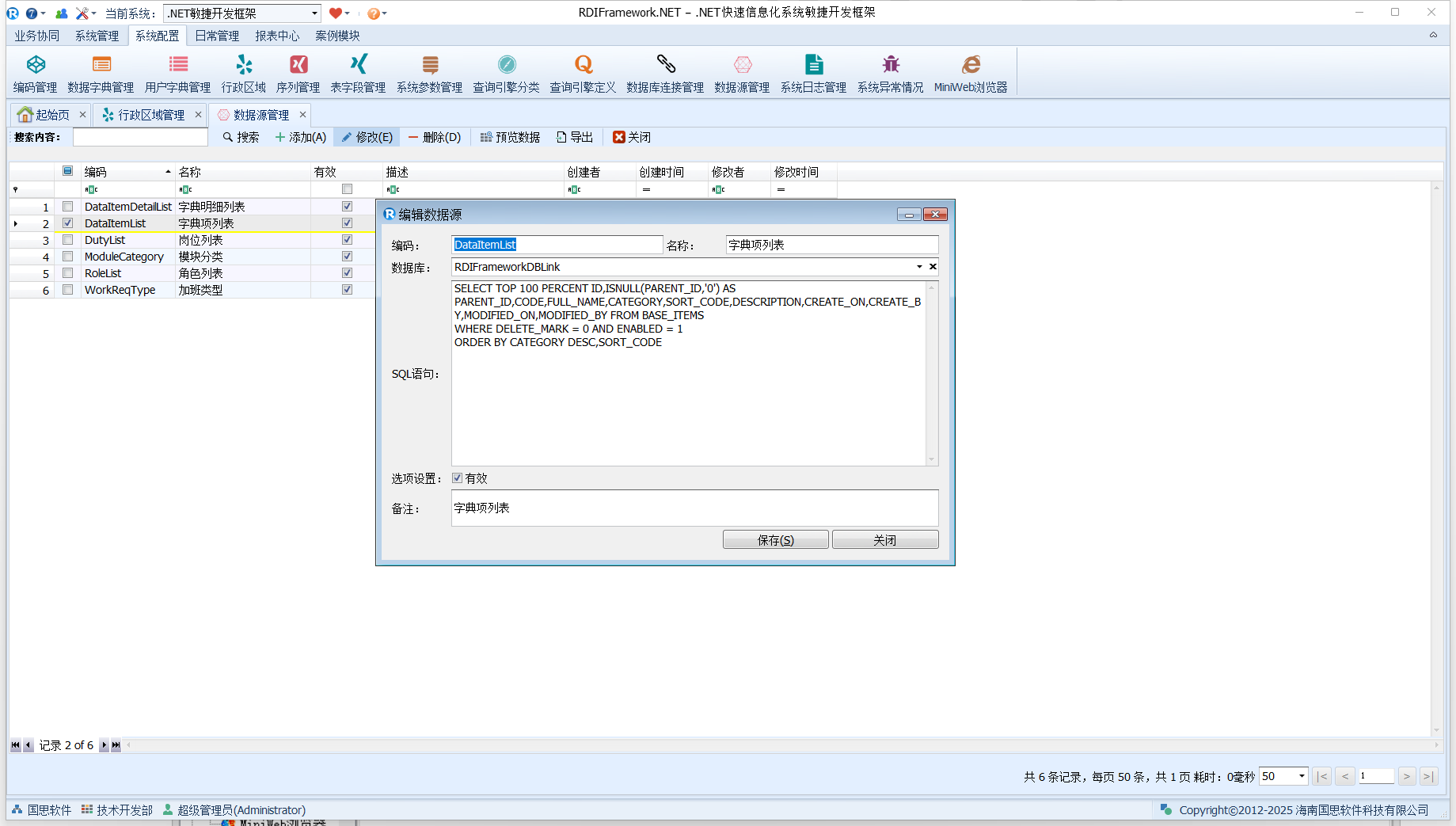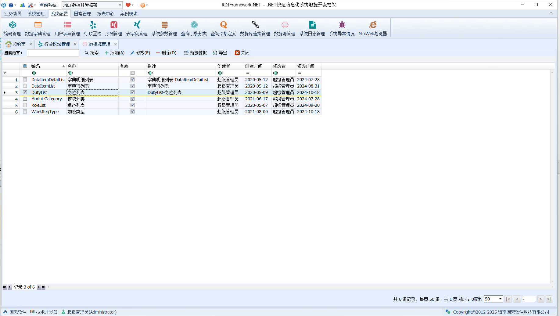 数据源管理可以做为其他常用应用的基础数据来源,如:报表、界面需引用的数据来源等等来做扩展使用,数据源管理主界面如下图所示。