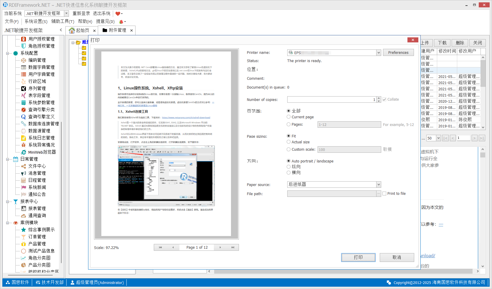 我们的文件中心可以对各种类型的文件在线直接预览,预览的同时还可以打印。下面分别展示各类型文件的预览效果。