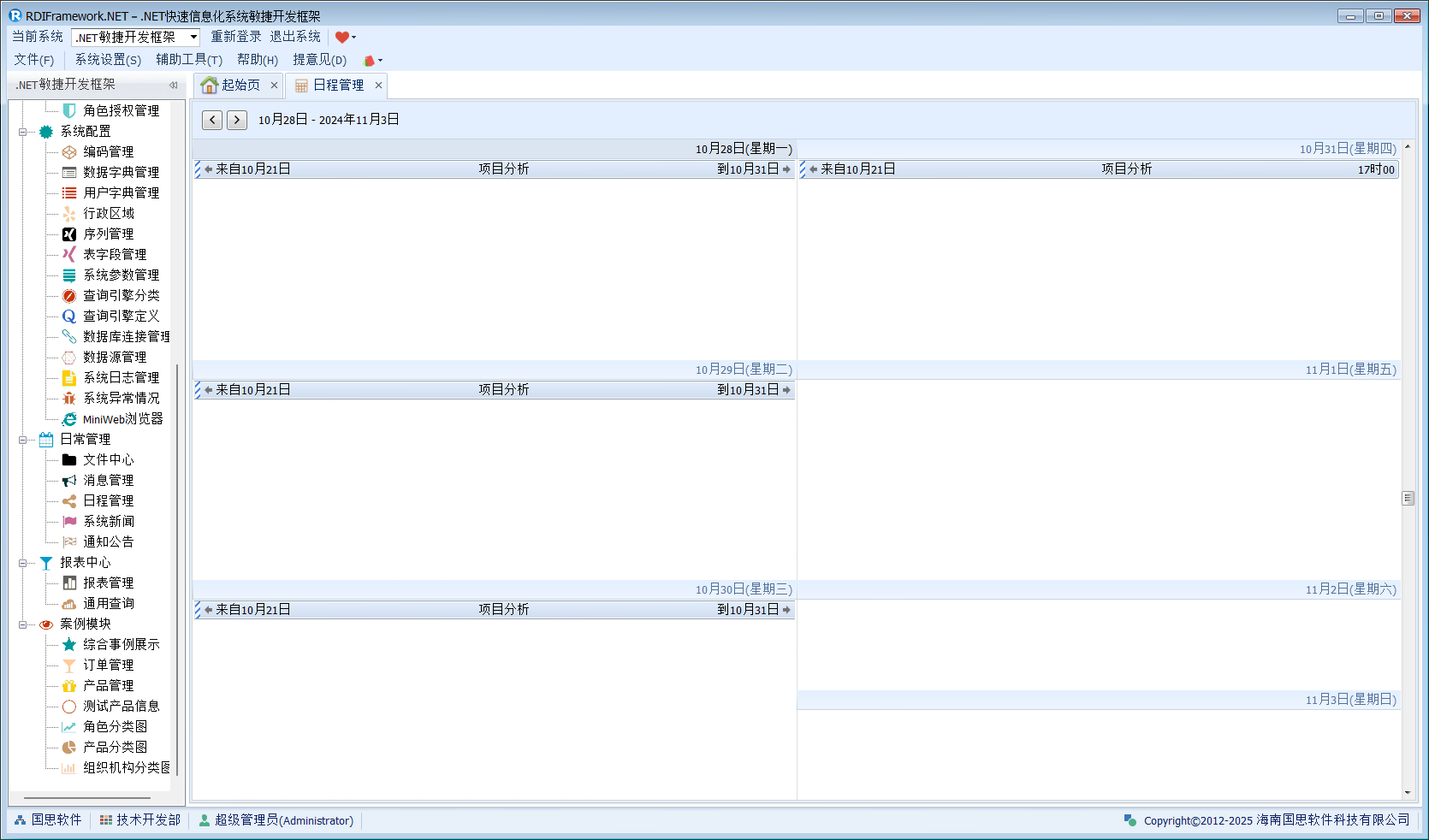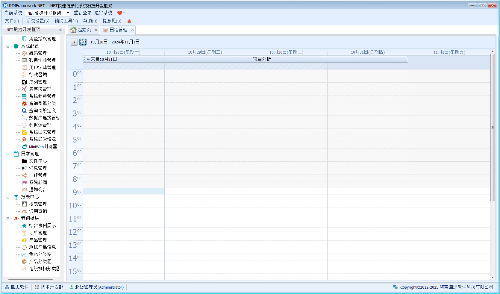 日程管理基于月、周、日的日历视图,把安排到每一天的具体时间点,让每一天的时间都充分利用;甚至您也可以把个人非工作事项也安排进来,完全是属于自己的全时间管理。就是将每天的工作和事务安排在日期中,并做一个有效的记录,方便管理日常的工作和事务,达到工作备忘的目的。同时也具有对员工日常工作进行指导、监督的作用。