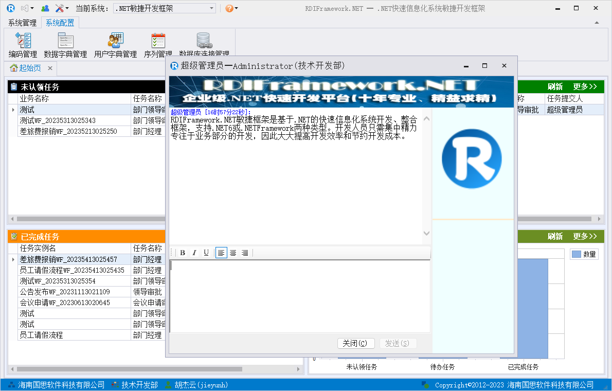 我们以"胡杰云"登录,会自动弹出消息,如下图所示。