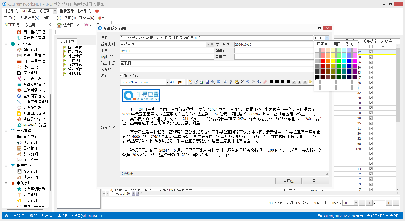 修改新闻如下图所示,我们还可以设置新闻标题的颜色。