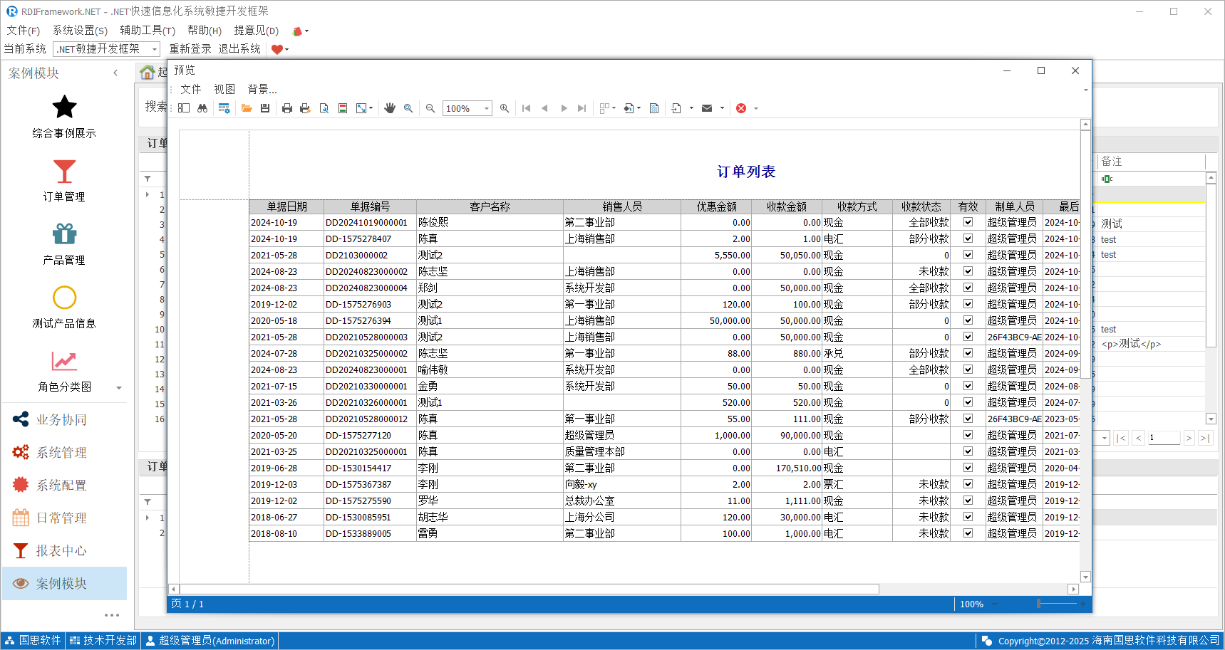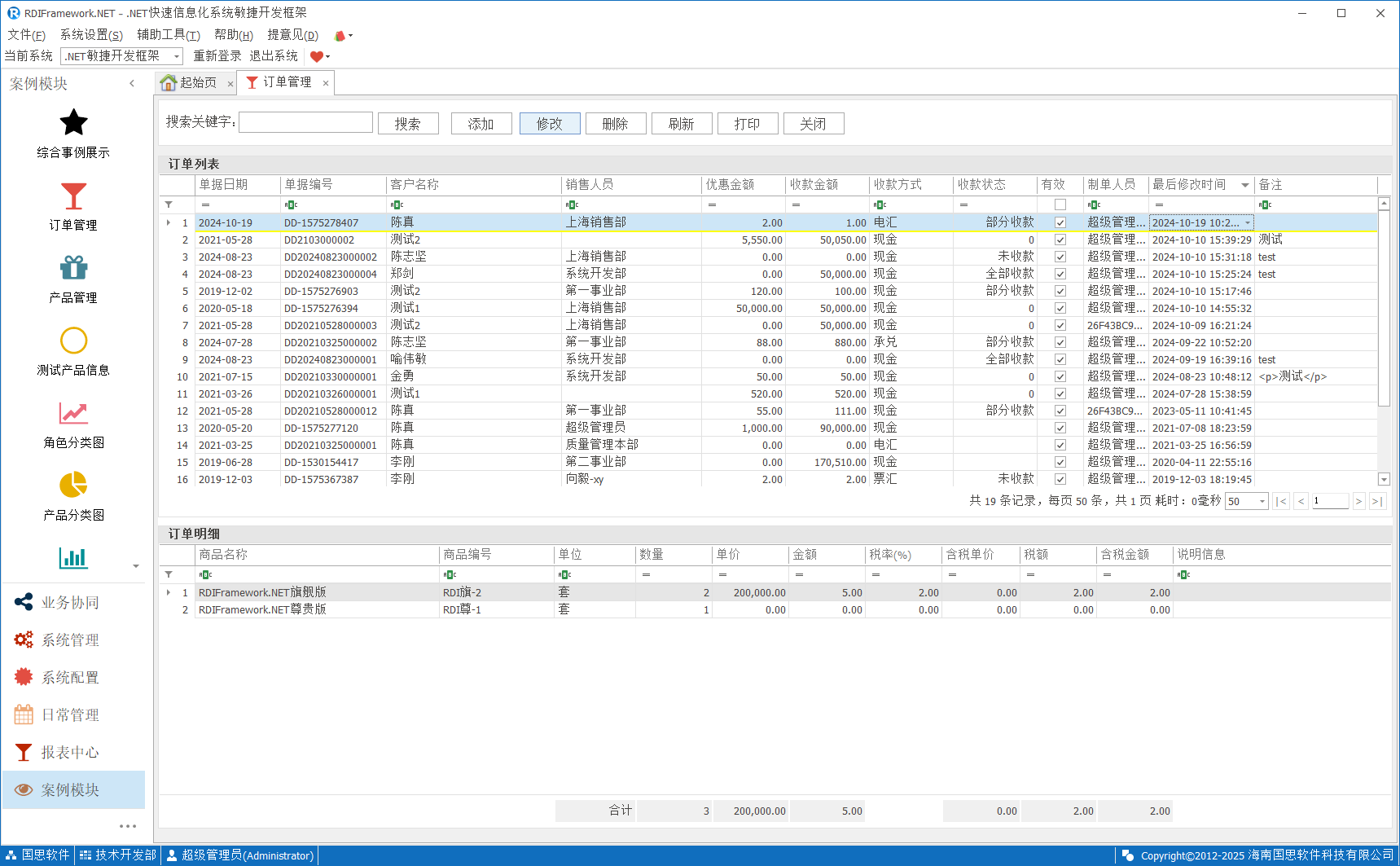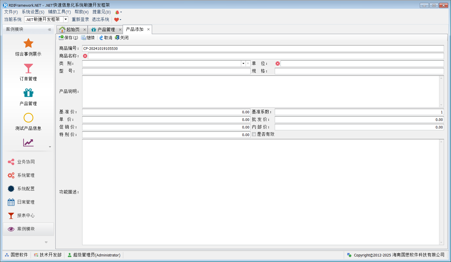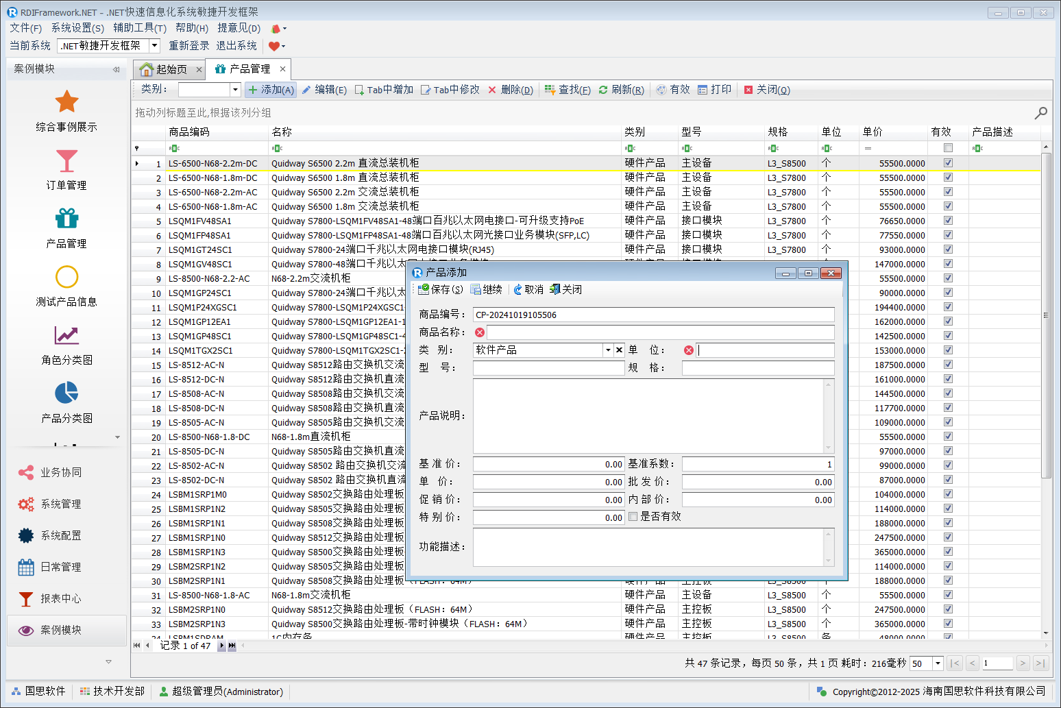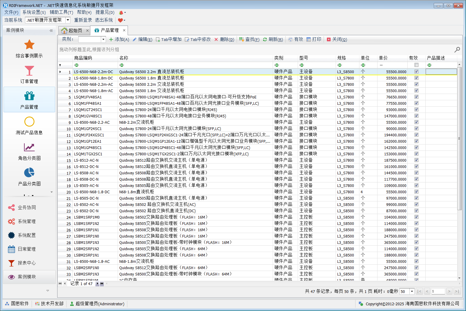 产品管理集产品新增、修改、删除、打印于一体,如下图所示。