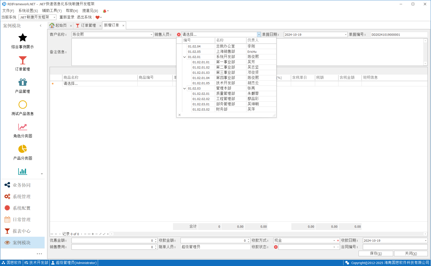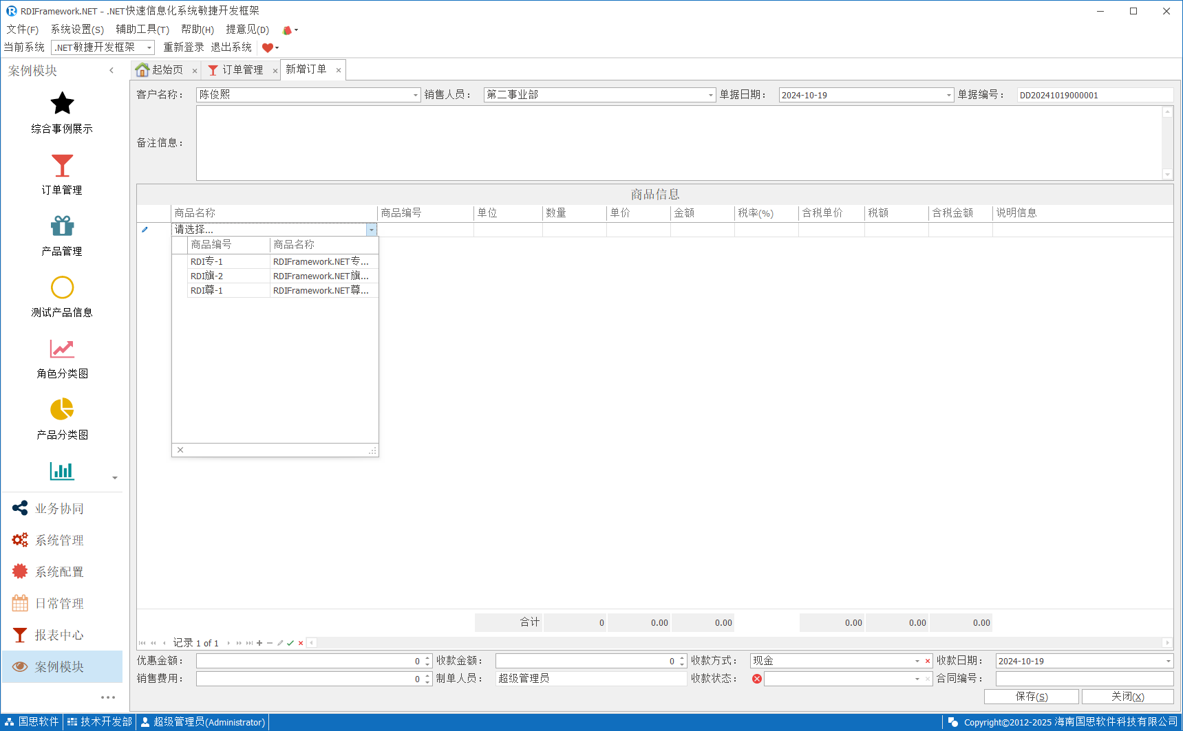 新增产品如下图所示,丰富的控件展示,列表直接编辑,自动计算并汇总等实用功能。