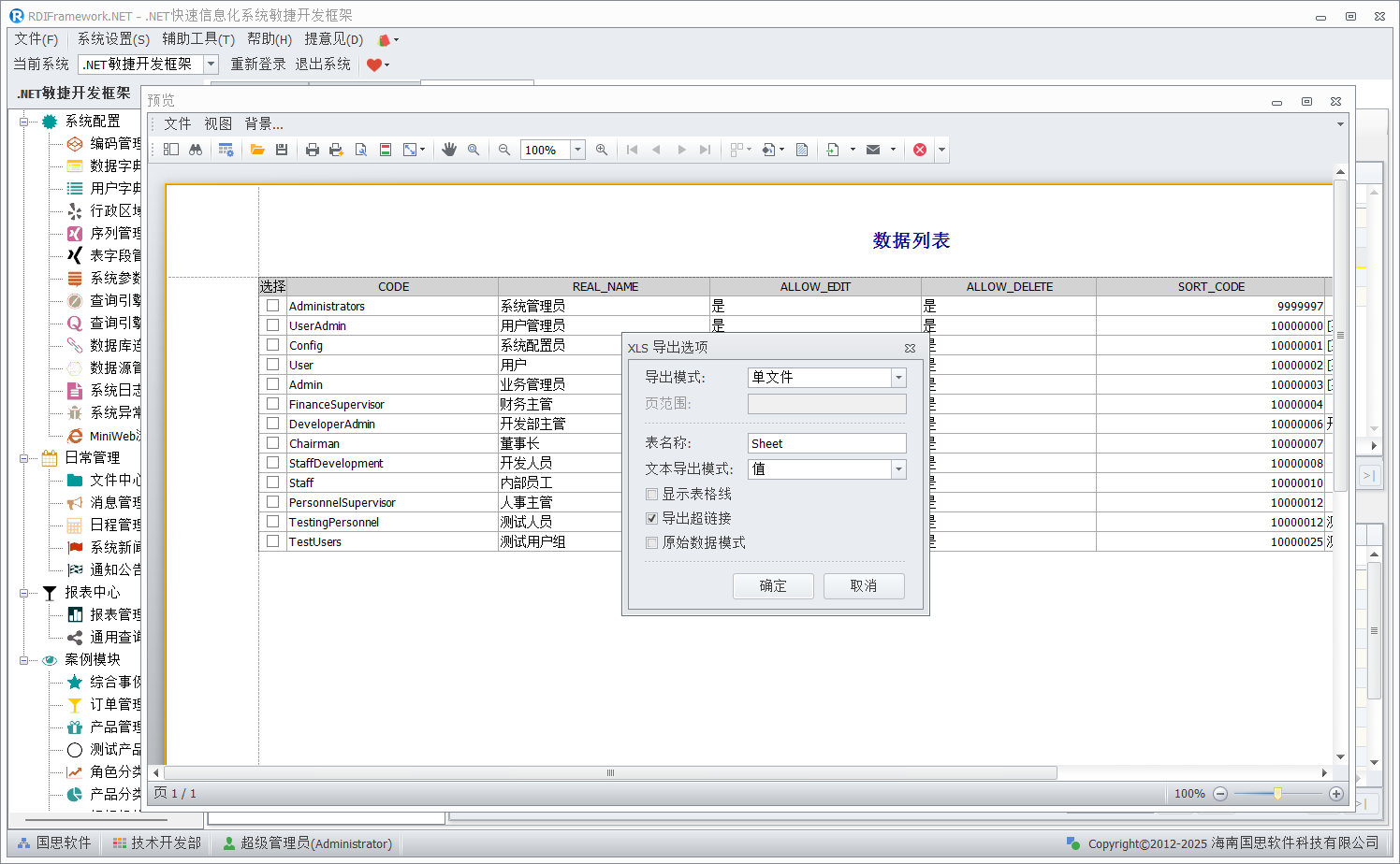 在通用查询界面,查询出来的数据我们可以打印出来,在主界面上单击"打印"按钮即可弹出打印对话框,如下图所示。