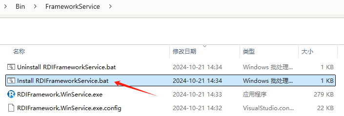 [Install RDIFrameworkService.bat:用于安装框架的 WCF 服务以寄存到 Windows 服务上。