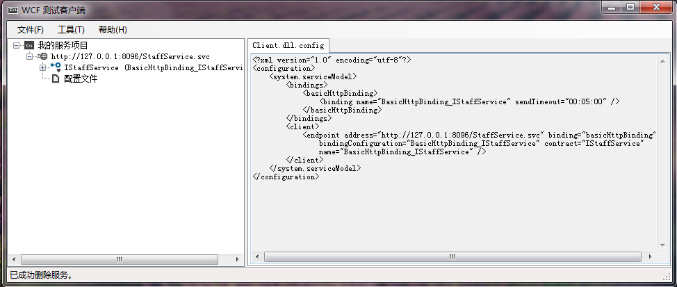 当然了,对于服务模式的客户端与服务端的正确配置以及绑定的方法,可以参考相关文章,在我们框架的配置文件中也进行了详细的说明。