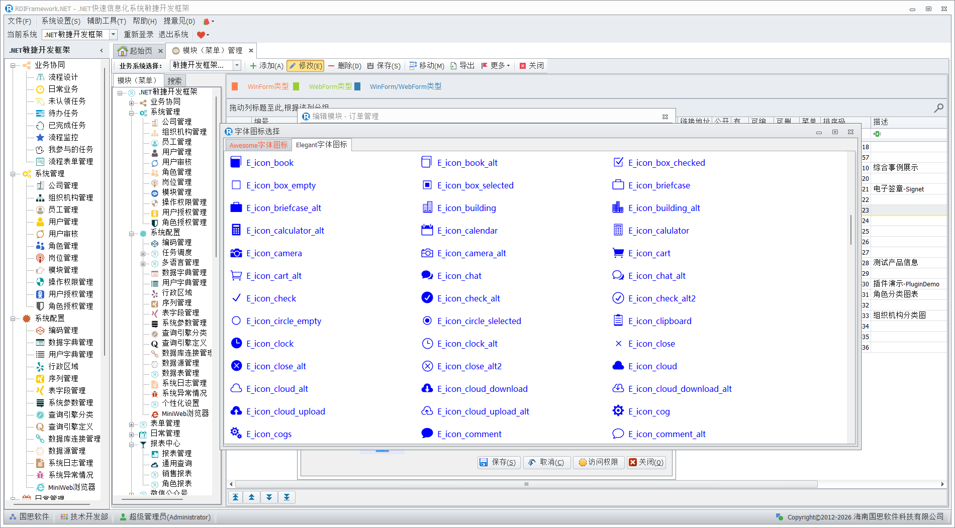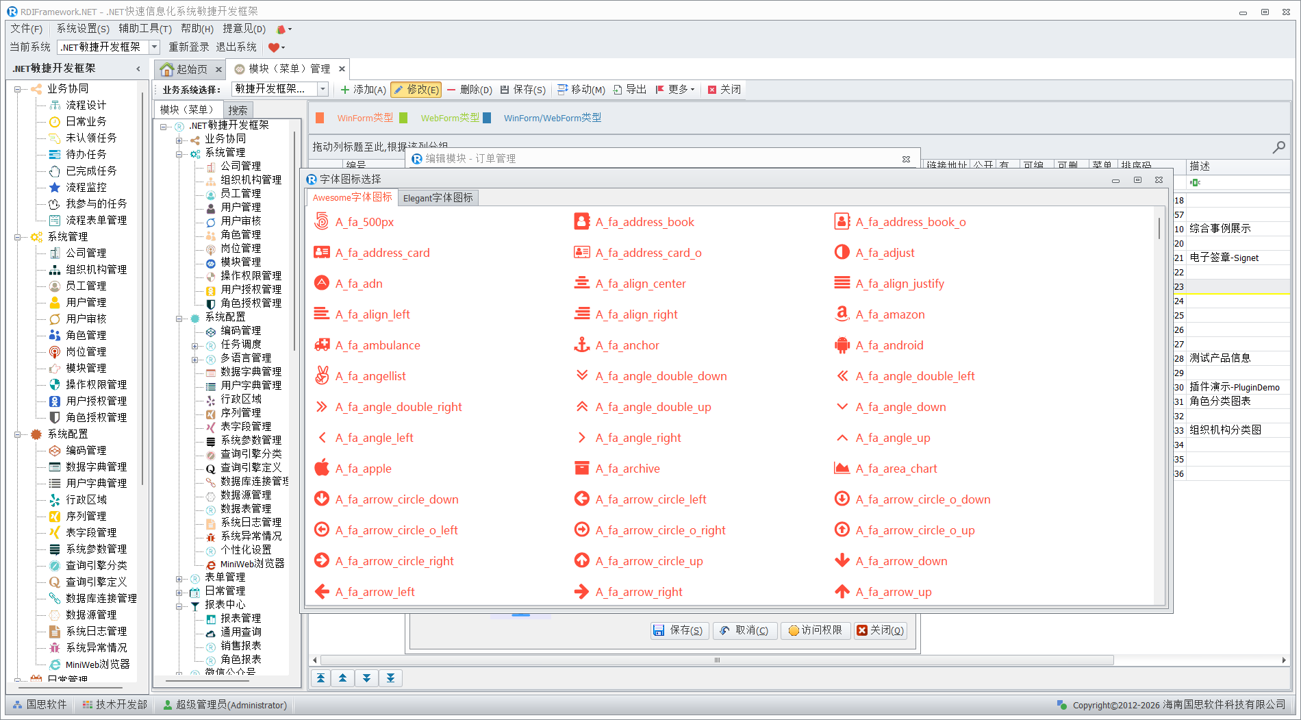分两种类型:一种是常规图片图标、一种是字体图标,推荐使用字体图标。系统加载时通过设置的参数来确定用指定类型图标来加载模块。