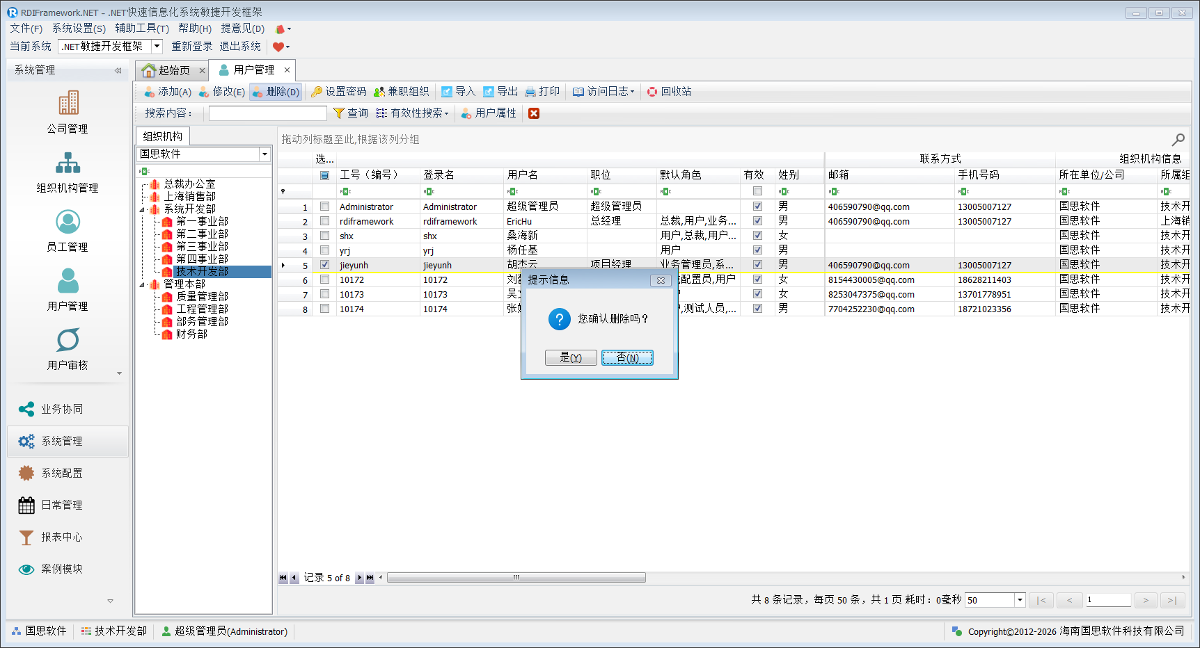 对于离职的用户可以进行删除(在框架中是逻辑删除)。